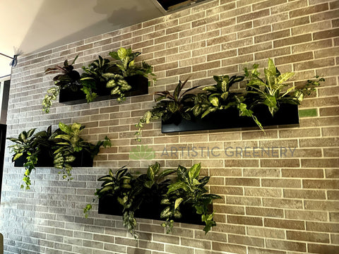 Description: Designed, supplied and installed artificial plants on suspended planters, pots and plants, and built in planters