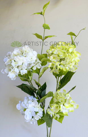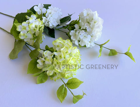 F0483 Hydrangea Stem 89cm White / Light Green (Clearance Stock)