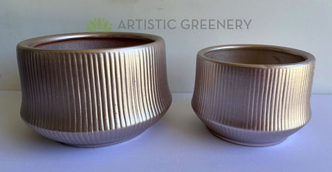 CER0028 Rose Pink Ribbed Ceramic Pots - 2 Sizes