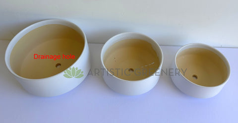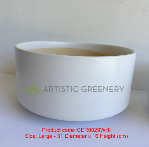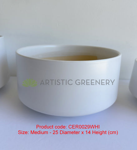 CER0029WHI White Round Ceramic Planter - 3 Sizes